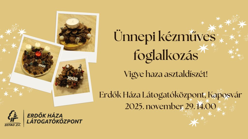 14:30-tól Dr. Mosoni László tart rövid, ám érdekes előadást a Betlehemi csillagról, majd minden résztvevő elkészítheti saját, erdei hangulatú ünnepi asztaldíszét – természetes anyagokból.