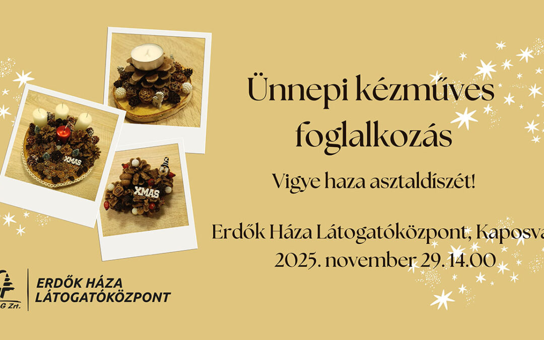 14:30-tól Dr. Mosoni László tart rövid, ám érdekes előadást a Betlehemi csillagról, majd minden résztvevő elkészítheti saját, erdei hangulatú ünnepi asztaldíszét – természetes anyagokból.