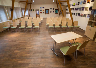 • Sokoldalú terem: 132 m²-es, világos, barátságos foglalkoztató tér 50 fő befogadására.